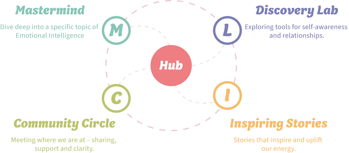 Every two weeks, in our Masterminds, we dive deep into a new topic in emotional intelligence, and once a month, we explore self-awareness and relationships in the Discovery Lab — so it feels like an open-ended program where we learn in a natural way.